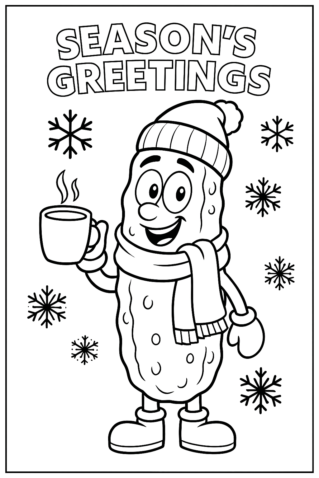 Enjoy this holiday pickle coloring page, perfect for a cozy day inside.